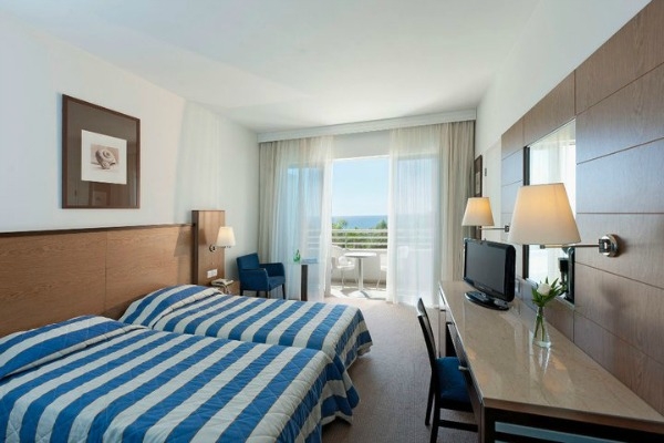 Facilitati camere hotel Mediterranean Beach, Cipru: Hotelul dispune de 304 de camere dotate cu baie renovata cu finisaje de lux, uscator de par, halate de baie, telefon direct, tv, internet, play station, radio, minibar, baby-interfon, incalzire, aer conditionat si balcon.